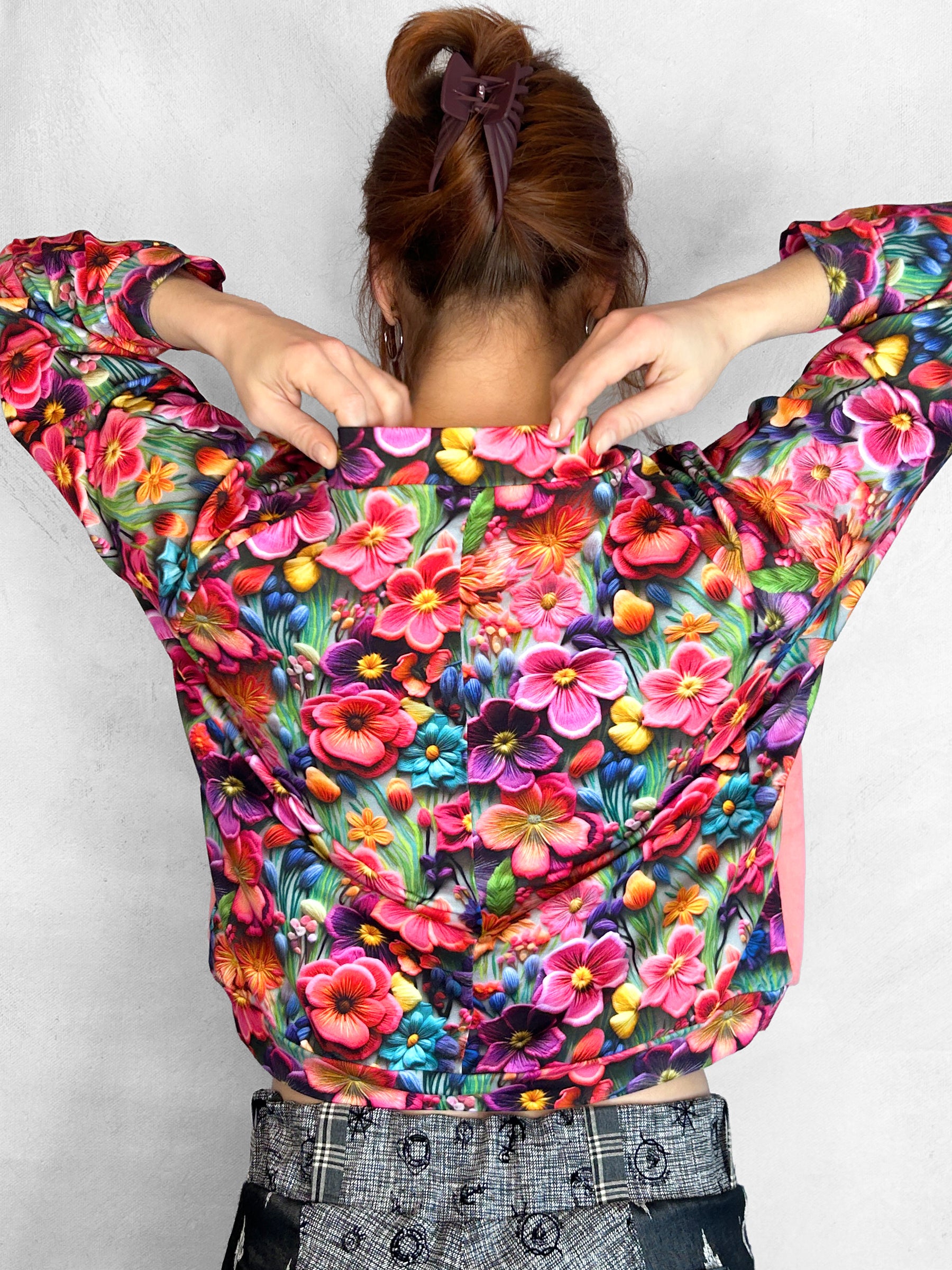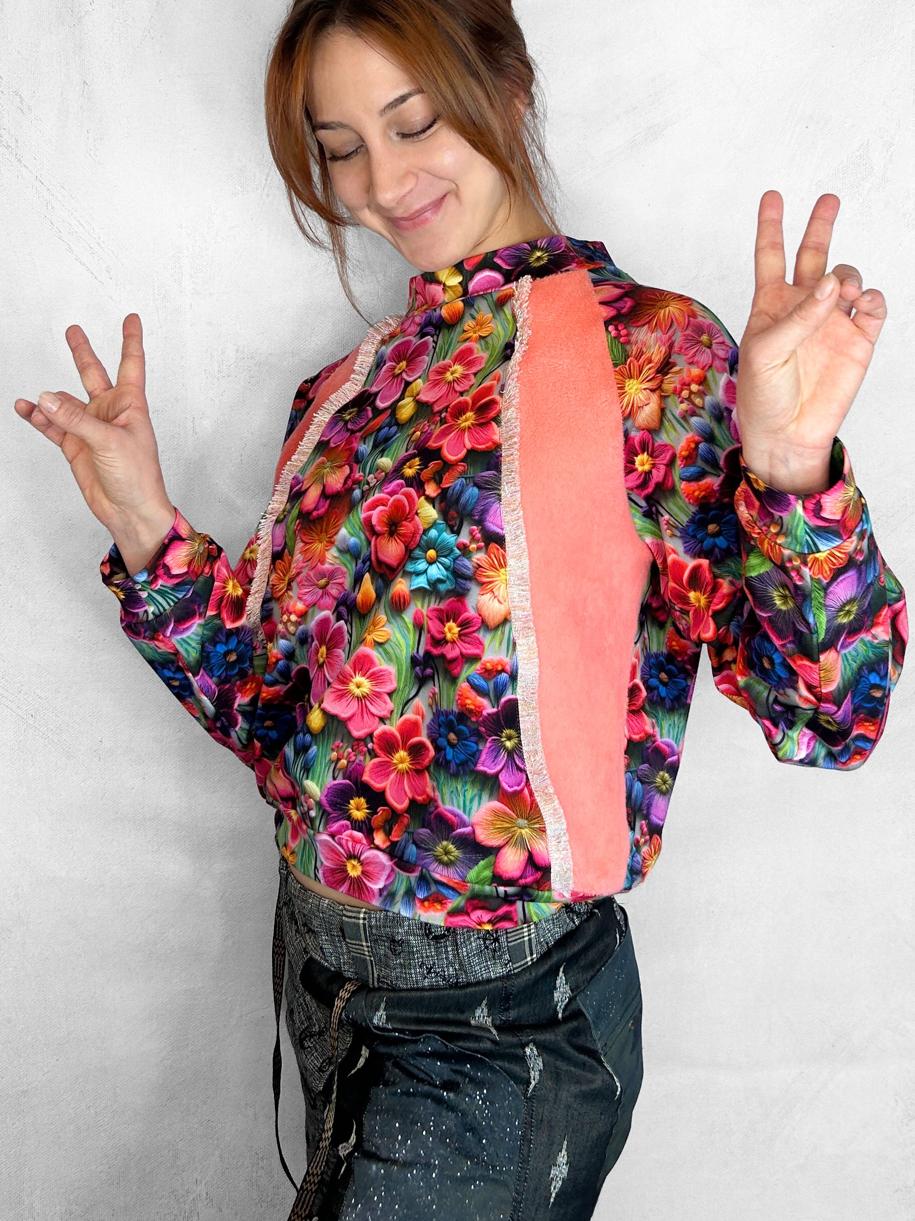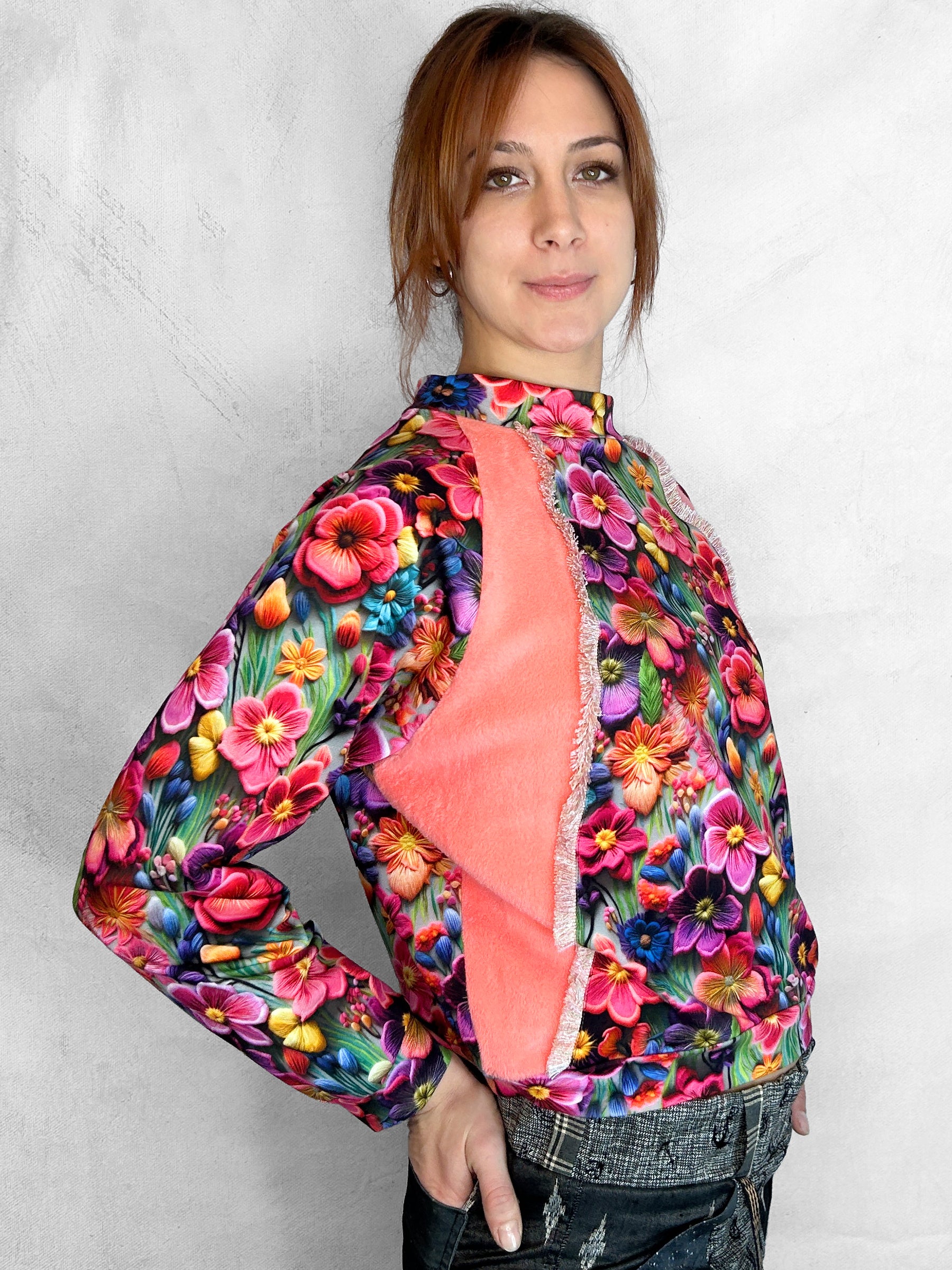 This vibrant sweatshirt is made of a colourful french terry fabric and very cosy cotton fleece side panels alongside delicate fringe bordering. It is a true eye-catcher but keeps you comfortable and warm.